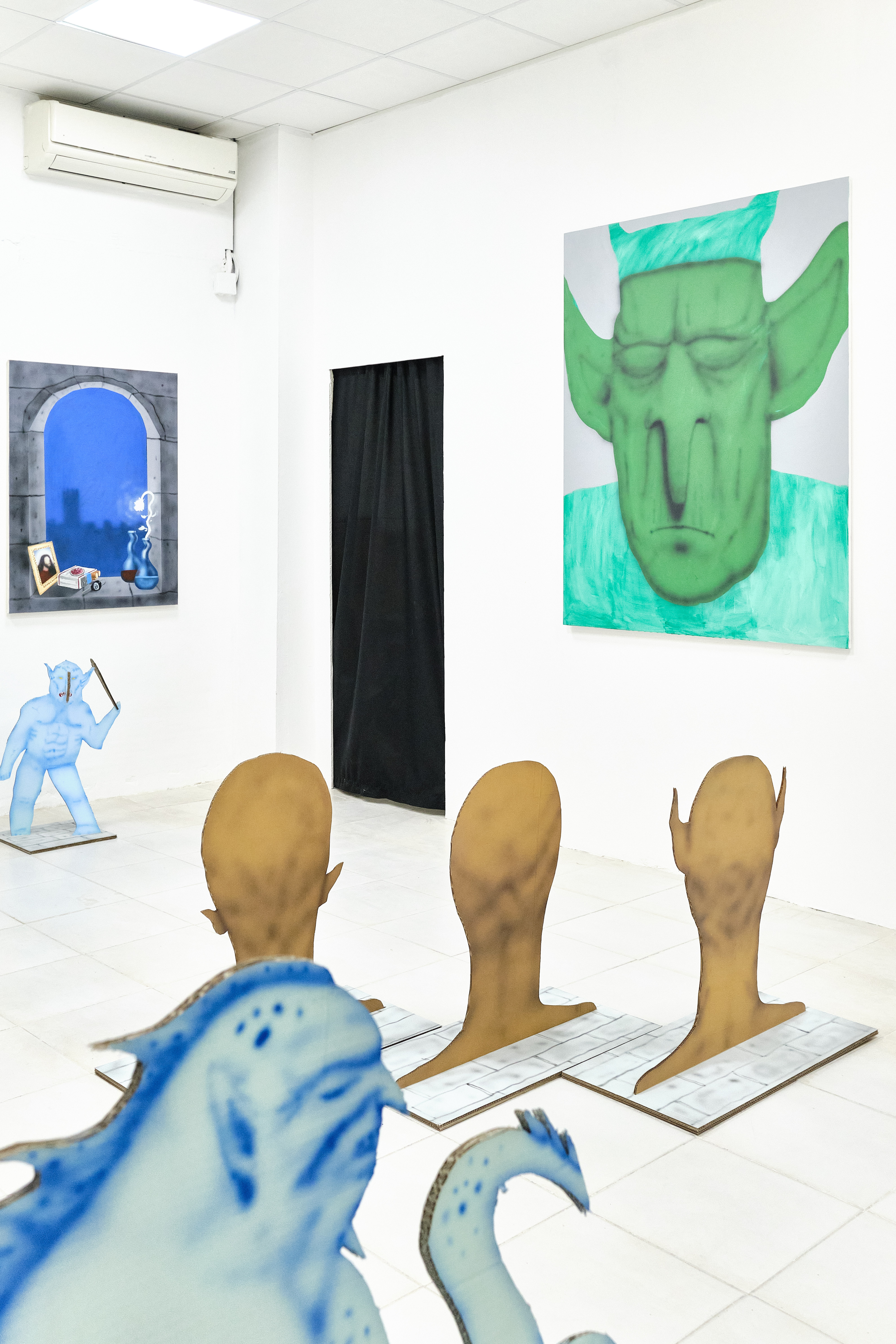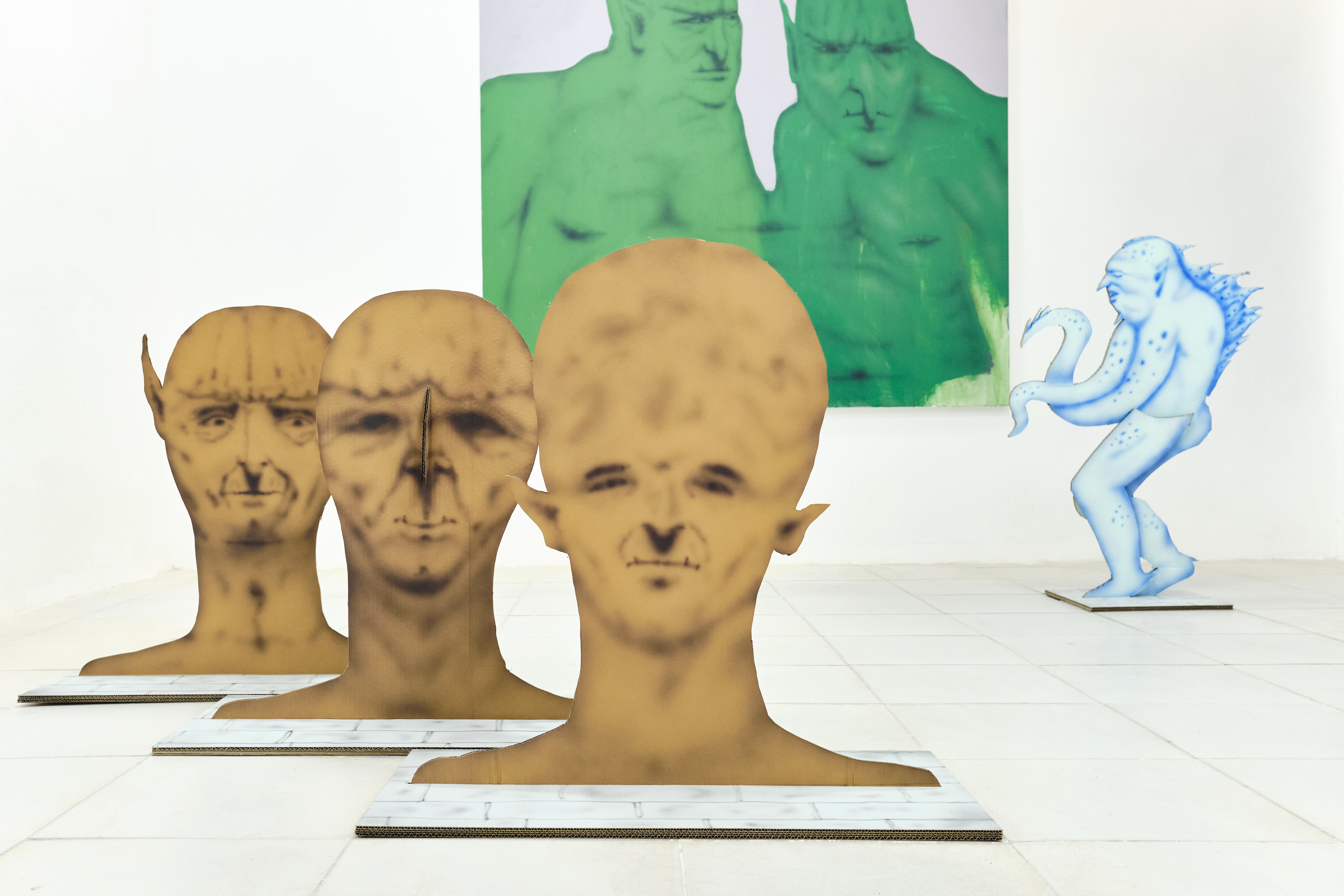Los entes dispuestos en el espacio expositivo tienen una mirada triste y vacía que invita a